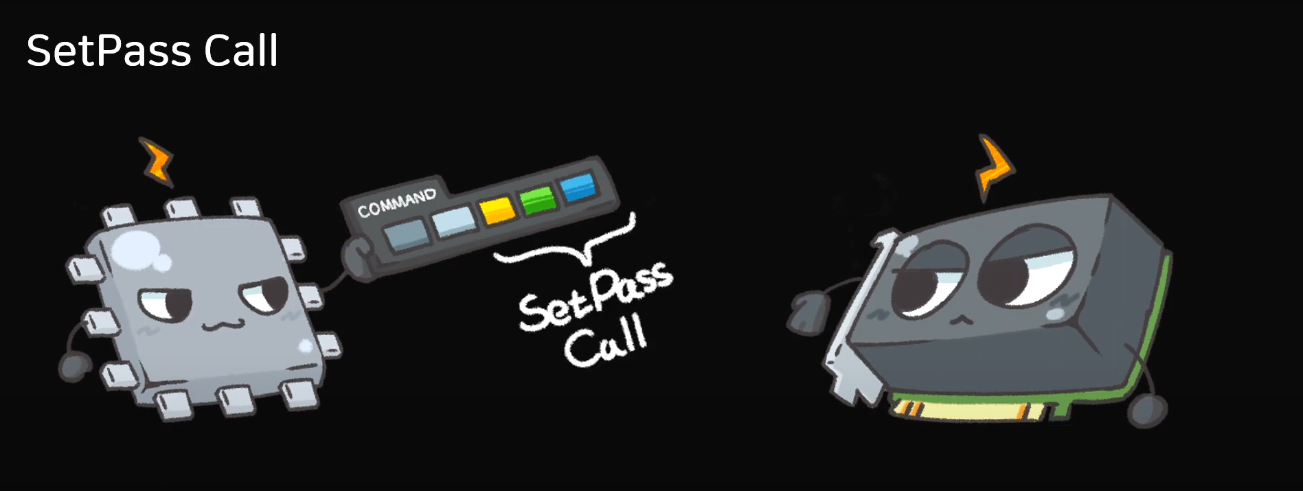 SetPass Call자체는 버텍스 데이터를 직접 다루는 명령은 아닙니다. 하지만 이 호출은 버텍스 셰이더를 포함한 후속그리기 명령(Draw Call)들이 어떤 환경(렌더 타겟, 뷰포트, 기타 상태)에서 실행될지를 결정합니다.