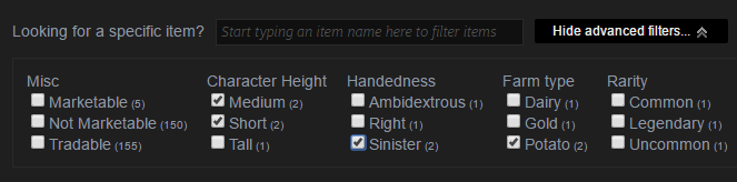 Item 태그를 사용하면 Steam이 아이템의 대한 "고급 필터"를 이용할 수 있습니다.